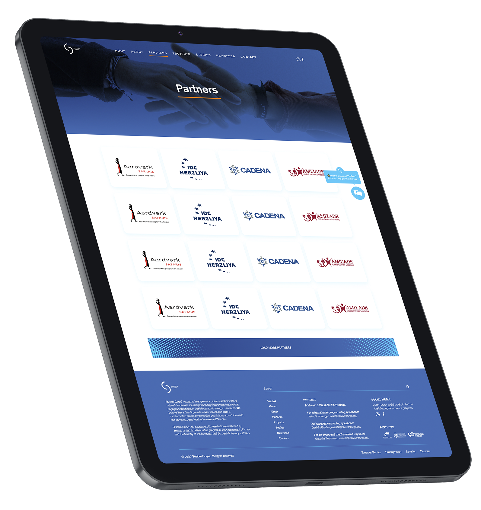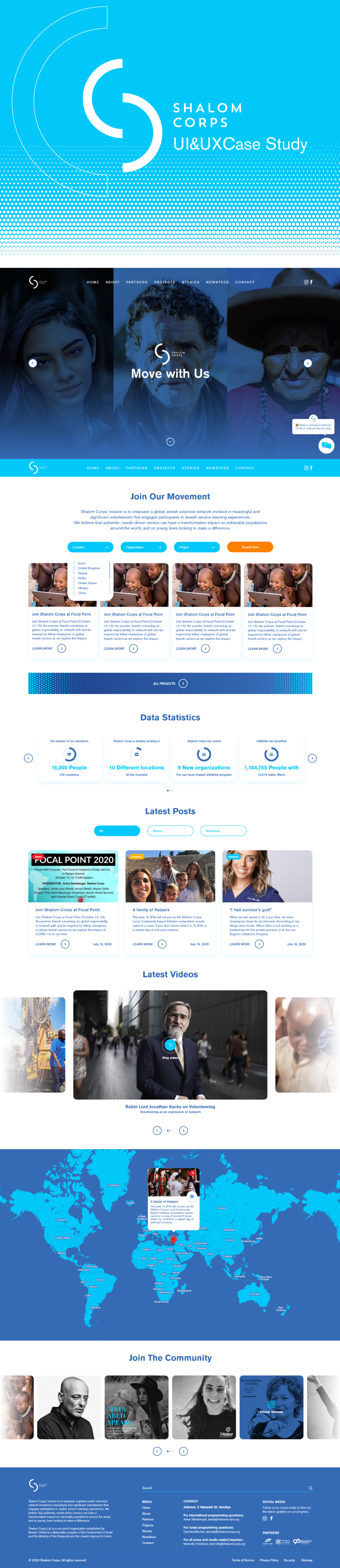 עיצוב ממשק המשתמש של Shalom Corps דרש תרגום של ערכים מופשטים כמו אכפתיות, קהילתיות ותחושת שליחות – לחוויה דיגיטלית נגישה, בהירה ומזמינה. האתר פונה לקהל רחב: צעירים, רכזים, ארגונים בינלאומיים, ותורמים – וכל אחד מהם מחפש משהו אחר, בקצב אחר. היה עלינו ליצור היררכיה ברורה, ניווט פשוט ושפה ויזואלית שמרגישה גלובלית אך אנושית. שמנו דגש על שימוש נכון בצבעים, אייקונים וטיפוגרפיה כדי לייצר תחושת זרימה, שקיפות והזדהות – גם עבור מי שנכנס לאתר בפעם הראשונה.